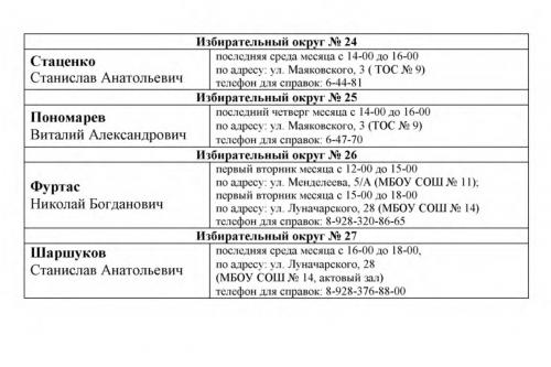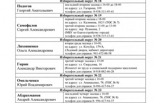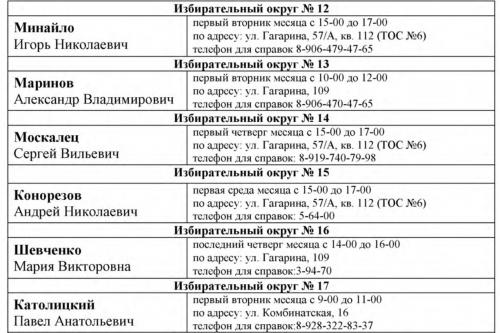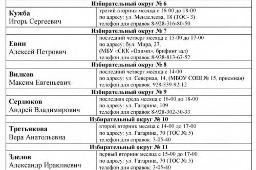 ГРАФИК приема избирателей депутатами Думы города Невинномысска VI созыва в 2021-2022 гг.