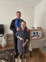 В преддверии Дня Защитника Отечества в рамках партпроекта «Историческая память» депутат Думы Андрей Владимирович Сердюков, заместитель председателя комитета по экономическому развитию и муниципальной собственности, поздравил ветерана Великой Отечественной войны Надежду Никитичну Дементьеву с её 100-летним юбилеем.