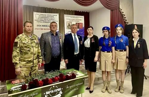 НовостиВ школе №14 состоялось открытие «Парты Героя» Шнейдер Александра Петровича, участника специальной военной операции.17.04.2026 На торжественном мероприятии присутствовали: депутат Думы города Невинномысска VII созыва Фуртас Николай Богданович; председатель Невинномысского городского отделения Всероссийской общественной организации «Боевое братство» Кужба Игорь Сергеевич; директор Центра развития образования Кезля Юлия Ивановна. Шнейдер Александр Петрович, обладая повышенным чувством справедливости, был настоящим патриотом своей Родины. Поэтому в сентябре 2022 года принял решение пойти на СВО. За мужество, отвагу и самоотверженность, проявленные при исполнении воинского и служебного долга, Шнейдер Александр Петрович награждён орденом Мужества (посмертно). Председатель Невинномысского городского отделения Всероссийской общественной организации «Боевое братство» Кужба Игорь Сергеевич на торжественном мероприятии вручил медаль «Активисту патриотического движения»: директору школы Кубрину Евгению Валентиновичу; советнику директора по воспитанию Афанасьевой Галине Владимировне. Храним имена Героев, отдавших свою жизнь за будущее нашей страны! Последние новости27.04.2026 Открытие мотосезона-2026 прошло в Невинномысск26.04.2026 День участников ликвидации последствий радиационных аварий и катастроф и памяти их жертв. 25.04.2026 «Цветущий город» 25.04.2026 Cвой 95-летний юбилей отметила ветеран Великой Отечественной войны, труженица «Невинномысского Азота» Мария Дмитриевна Лазаренко. 25.04.2026 Первенство города по фигурному катанию на коньках на призы Олимпийской чемпионки Елены Бережной — 2026 25.04.2026 Отчётный концерт оркестра русских народных инструментов Детской музыкальной школы №1 24.04.2026 Юные, но уже победители! 24.04.2026 50 лет — время читать с душой! 24.04.2026 Помним. Гордимся. Побеждаем. 23.04.2026 Делегация депутатов Думы города Невинномысска с рабочим визитом посетила Антрацитовский муниципальный округ. |