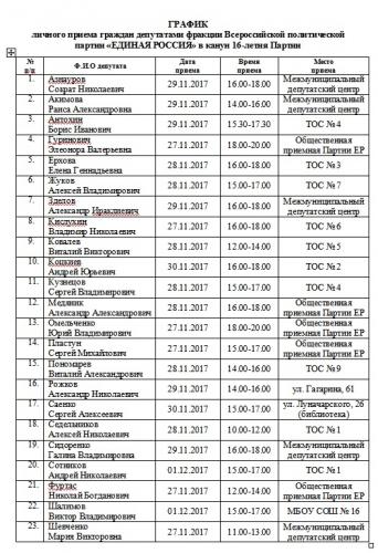 ГРАФИК личного приема граждан депутатами фракции Всероссийской политической партии «ЕДИНАЯ РОССИЯ»