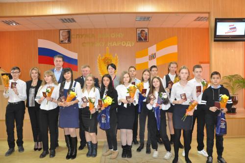 НовостиЮным невинномысцам вручили паспорта11.12.2019 В канун Дня Конституции Российской Федерации в рамках патриотической акции «Мы – граждане России!» юным невинномысцам, достигшим 14-летнего возраста, были вручены паспорта граждан Российской Федерации. Четырнадцать школьников, отличившиеся хорошей учебой, спортивными и творческими достижениями, общественной деятельностью, в торжественной обстановке получили свой главный документ– паспорт гражданина РФ. Поздравили учащихся и вручили юным гражданам Невинномысска паспорта первый заместитель председателя Думы города Сергей Пластун, первый заместитель главы администрации города Виктория Соколюк, начальник отдела МВД по городу Невинномысску Александр Толмачев и начальник отдела по вопросам миграции МВД России по городу Невинномысску Юлия Коркмазова. В своем выступлении первый заместитель председателя Думы города Сергей Пластун пожелал учащимся быть достойными гражданами нашей страны, а также успешной учебы и новых достижений. (Соб.инф.) Последние новости14.11.2025 «Классная встреча» против вражды и экстремизма13.11.2025 Работа с наказами избирателей 12.11.2025 Краевые соревнования по боксу в Невинномысске 11.11.2025 От гимна — к науке: депутаты провели для школьников «Разговоры о важном», посвященные И.В. Мичурину 11.11.2025 Депутат Ольга Тимофеева поблагодарила сотрудников «Невинномысского Азота» за труд! 10.11.2025 10 ноября — Всемирный день науки за мир и развитие 10.11.2025 Уважаемые сотрудники и ветераны органов внутренних дел города Невинномысска! 10.11.2025 Ежегодно 10 ноября отмечается День сотрудника органов внутренних дел Российской Федерации. 08.11.2025 "Разговор на равных" 07.11.2025 Виталий Шиганов выслушал проблемы жителей избирательного округа №25 |