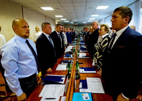 НовостиСостоялось первое заседание Думы города VI созыва29.09.2021 28 сентября состоялось первое заседание Думы города Невинномысска VI созыва. На заседании присутствовали депутат Государственной Думы РФ Ольга Тимофеева, депутаты Думы Ставропольского края Юрий Белый, Александр Рожков, Валерий Черницов, Владимир Шевченко, глава города Невинномыс-ска Михаил Миненков, исполнительный секретарь Невинномысского местного отделения ВВП «Единая Россия» Элеонора Гуринович, представители федеральных органов исполнительной власти, заместители главы администрации города, председатели участковых избирательных комиссий и городские средства массовой информации Для подтверждения полномочий вновь избранных депутатов Думы города Невинномысска VI созыва слово было предоставлено председателю территориальной избирательной комиссии Елене Раманн, которая проинформировала присутствующих об итогах состоявшихся выборов в представительный орган местного самоуправления города и вручила депутатам временные удостоверения. В соответствии с Уставом города и Регламентом Думы города по итогам открытого голосования председателем Думы города Невинномысска VI созыва, осуществляющим полномочия на непостоянной основе, единогласно избран депутат Думы города Невинномысска Александр Медяник. На должность первого заместителя избран Олег Тальберг. Еще двумя заместителями стали Александр Зделов и Ольга Ляховненко. В Думе нового созыва будет работать семь комиссий, в состав каждой из них вошло не менее пяти депутатов. На заседании были сформированы составы комиссий и избраны их председатели. Комиссию по бюджету и налоговой политике возглавил Николай Фуртас, в прошлом созыве занимавший должность заместителя председателя этой же комиссии. За работу комиссии по жилищно-коммунальному хозяйству будет отвечать Сергей Самофалов. Мария Шевченко продолжит руководить комиссией по законности и местному самоуправлению. Председателем комиссии по общественной безопасности избран Алексей Евин. За вопросы социальной политики по-прежнему будет отвечать Елена Ерхова. Руководить комиссией по экономическому развитию и муниципальной собственности в новом созыве будет Александр Гирин, а комиссию по экологии возглавила Наталья Коль. Дополнительно на первом заседании рассмотрен вопрос «О проведении конкурса по отбору кандидатур на должность главы города Невинномысска», который назначен на 16 ноября 2021 года. Итак, новый состав Думы города Невинномысска представлен 27 депутатами. По итогам единого дня голосования состав депутатского корпуса значительно обновился. Только 7 депутатов работали в прошлом созыве, 20 депутатов впервые избраны в представительный орган города. На постоянной основе в Думе города будет работать 1 депутат. Остальные будут осуществлять свои функции на непостоянной основе. Дума нового созыва сформирована, избраны председатель и его заместители. И теперь депутаты приступят к рассмотрению плановых вопросов. Последние новости14.11.2025 «Классная встреча» против вражды и экстремизма13.11.2025 Работа с наказами избирателей 12.11.2025 Краевые соревнования по боксу в Невинномысске 11.11.2025 От гимна — к науке: депутаты провели для школьников «Разговоры о важном», посвященные И.В. Мичурину 11.11.2025 Депутат Ольга Тимофеева поблагодарила сотрудников «Невинном