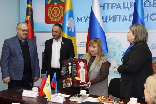 НовостиАнтрацитовский муниципальный округ с рабочим визитом посетила делегация Думы города Невинномысска Ставропольского края21.01.2026 Антрацитовский муниципальный округ с рабочим визитом посетила делегация Думы города Невинномысска Ставропольского края во главе с председателем Думы Татьяной Олешкевич. В состав делегации также вошли депутаты Думы города Невинномысска. Гостей встретили Глава Антрацитовского муниципального округа Сергей Саенко, председатель Совета округа Виктория Сошина, заместитель председателя Совета Елена Рахмукова, а также депутаты Совета Антрацитовского муниципального округа. В ходе рабочей встречи стороны обсудили перспективы межмуниципального сотрудничества, вопросы обмена опытом в сфере муниципального управления и развития территорий. Особое внимание было уделено обсуждению проекта соглашения о межмуниципальном сотрудничестве, направленного на укрепление партнёрских связей и расширение взаимодействия между муниципальными образованиями. По итогам визита участники выразили готовность к дальнейшему конструктивному взаимодействию, подчеркнули важность развития партнёрских отношений и договорились продолжить работу по формированию и реализации совместных проектов в рамках межмуниципального сотрудничества. Последние новости27.01.2026 28 января 2026 года в 10 часов в зале заседаний Думы города состоится внеочередное заседание Думы города Невинномысска21.01.2026 Антрацитовский муниципальный округ с рабочим визитом посетила делегация Думы города Невинномысска Ставропольского края 19.01.2026 Протоирей Василий Шитик, в СОШ 3 поздравил всех учеников с праздником 15.01.2026 Сегодня, 15 января, в России отмечается День образования Следственного комитета Российской Федерации. 31.12.2025 С наступающим Новым годом! 30.12.2025 Волшебство Нового года начинается с общих дел! 30.12.2025 Депутаты Думы города Невинномысска Сергей Александрович Самофалов и Игорь Николаевич Минайло продолжают дарить волшебство 29.12.2025 Приём! Детская мечта вышла на связь 29.12.2025 «Добрая Елка» 29.12.2025 Добрая традиция новогодних чудес в МБОУ СОШ №5 |