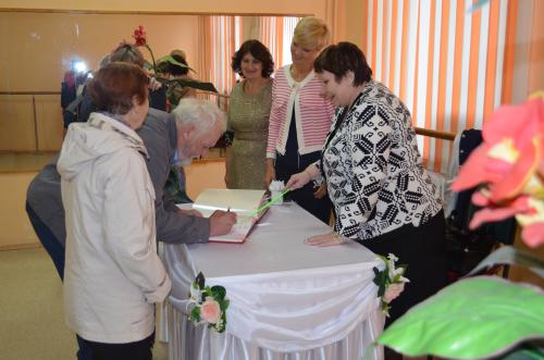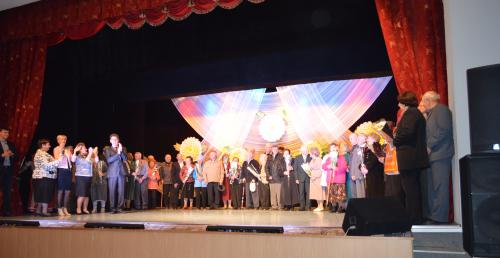 НовостиТе, кто душою не стареет, в чьем сердце молодость жива!10.10.2013 На протяжении уже нескольких лет существует добрая традиция празднования Дня пожилого человека в стенах Дворца культуры им. Горького. Территориальный Совет №1, совместно с депутатами Думы Невинномысска С. Глушко, В. Третьяковой и А. Храмовым, а так же артисты Дворца готовят для пожилых людей микрорайона красочный праздник с приятными памятными подарками. Не стал исключением и этот год. 1 октября зал Дворца культуры им. Горького был переполнен. Из приглашенных на празднование Дня пожилого человека, всегда особо чествуются семейные пары, празднующие полувековые и более юбилеи совместной жизни. Так, в этом году шестидесятилетие своей семьи праздновали семьи Александра Серафимовича и Анны Спиридоновны Наполовых и Владимира Терентьевича и Любови Андреевны Марченко. 55-летний юбилей – семьи Николая Николаевича и Нины Владимировны Ноздрачевых, Владимира Дмитриевича и Валентины Макаровны Григорьевых, Николая Григорьевича и Веры Михайловны Сидоренко, Николая Георгиевича и Люси Петровны Беликовых, Станислава Ивановича и Галины Дмитриевны Масловых, Николая Ивановича и Екатерины Дмитриевны Черепахиных, Кирама Вагизовича и Зайнап Сальмановны Мирхайдаровых, Ивана Моисеевича и Александры Петровны Сидоренко, Алексея Федоровича и Лидии Васильевны Салкиных, Алексея Ивановича и Анны Ивановны Гудниковых и Николая Абрамовича и Раисы Ивановны Саранкиных. Полувековой юбилей совместной жизни отмечали семейные пары Анатолий Пантелеевич и Раиса Ивановна Лынник, Иван Иванович и Полина Семеновна Башковы, Николай Владимирович и Галина Дмитриевна Михайловские, Владимир Алексеевич и Вера Ивановна Сопелкины, Анатолий Алексеевич и Екатерина Федоровна Нагорняк, Николай Федорович и Вера Стефановна Олейниковы, Виктор Георгиевич и Мария Дмитриевна Захарченко, Анатолий Евгеньевич и Раиса Алексеевна Шнайдер, Виктор Федорович и Зинаида Григорьевна Фомины, Виктор Иванович и Мария Петровна Глуховы, Николай Андреевич и Надежда Григорьевна Шиловы, Николай Петрович и Валентина Федоровна Брехины, и Валентин Александрович и Светлана Ивановна Гридневы. Кроме того, с пятидесяти однолетней годовщиной поздравляли семью Анатолия Васильевича и Веры Константиновны Беловоловых, с пятидесяти трехлетней семьи Ивана Васильевича и Таисии Михайловны Воробьевых и Василия Петровича и Лидии Васильевны Лагутиных. 54 года совместной жизни в этом году отметит семья Александра Ефимовича и Галины Егоровны Денисенко. А семьи Георгия Пракофьевича и Раисы Алексеевны Ульянченко и Владимира Дмитриевича и Анастасии Константиновны Ереминых празднуют 57 годовщину. Руководитель Невинномысского отдела ЗАГСа Т.Васильченко в торжественной обстановке зарегистрировала юбилейные даты этих пар, о чем они сделали записи в Книге Юбилейных дат. После этой торжественной процедуры всех гостей ждал веселый красочный концерт на сцене Дворца культуры им. Горького. Поздравить пожилых людей с праздником пришли заместитель главы Невинномысска Г. Подогов, депутаты С. Глушко, В. Третьякова и А. Храмов. Из их уст со сцены звучало много теплых и искренних слов. Обращаясь к виновникам торжества, Георгий Подогов отметил, что с тех пор, как был установлен этот праздник, то есть с 1 октября 1991 года, уровень жизни пожилых людей 