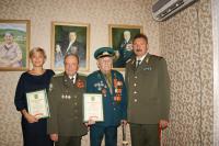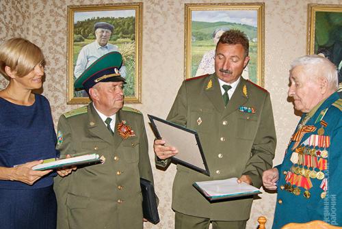 НовостиЕго жизнь — пример для подражания14.10.2015 1 октября 90-летие отметил участник Великой Отечественной войны, капитан в отставке Дмитрий Александрович Барышников. Поздравить его пришли почетные гости: от Союза генералов Ставрополья — генерал-майор И. Кондуб, депутат Думы Невинномысска С. Глушко, куратор работы с ветеранами-пограничниками по Ставропольскому краю пограничного управления ФСБ РФ полковник А. Лесных. Юбиляру вручили персональное поздравление Президента РФ. В адрес фронтовика также поступили поздравления от Губернатора Ставропольского края Владимира Владимирова и руководства Думы Ставропольского края. Фронтовику-пограничнику вручили благодарственное письмо председателя координационного совета Международного союза общественных объединений ветеранов (пенсионеров) пограничной службы генерал-полковника А. Еремина и Союза генералов Ставрополья, поздравление заместителя председателя Думы СК В. Лозового, прекрасный фолиант «Время выбрало нас», а также памятные сувениры. Боевые друзья-однополчане, ветераны-пограничники на краевом радио поздравили Дмитрия Александровича с этим замечательным юбилеем. Депутат Думы г. Невинномысска Светлана Глушко от всей души поздравила именинника, пожелала ему доброго здоровья, бодрости духа и долгих лет жизни. Дмитрий Александрович Барышников был призван на военную службу в феврале 1943 года и направлен в действующую армию. — Я хорошо помню, как мы с мамой поехали в военкомат на санях, запряженных лошадью, в Ольховку, — рассказал Дмитрий Александрович, — по прибытии нам было приказано на следующий день быть в 3.00 на станции Шадринск. 25 км пути, зима, снег, темнота. Но мы прибыли прямо к вагону, я сел в поезд, а мама вернулась домой. Так я отправился на войну… Приехали на ст. Чебаркуль Челябинской области. Нас стали обучать военному делу. После окончания учебы пешком добирались до сборного пункта маршевого пополнения действующей армии, и стал я рядовым 1 отделения 1 взвода 1 роты 32 стрелкового полка 112 стрелковой Дальневосточной дивизии 1 Украинского фронта. Первый бой она приняла на Бородинском поле. Мы были молодые, нам было по 17 лет. Всего чуть более года на войне, но тем не менее много событий выпало на долю молодого бойца. Участвовал в форсировании Днепра, где получил ранение. После лечения в госпитале снова 1-й Украинский фронт. Прибыв в часть, Д. Барышников был направлен в школу младших командиров. Затем учёба в кавалерийском военном училище имени 1-й Конной Армии, которое окончил в начале 1947 года в звании младшего лейтенанта. Получил назначение в пограничные войска: сначала в 10-й Зайсановский погранотряд, потом были Архангельск, Мурманск и Карелия. Завершил пограничную службу капитаном, заместителем начальника 1-й заставы 1-го Краснознамённого погранотряда Северо-Западного пограничного округа в 1969 году. У Дмирия Александровича два сына — Анатолий и Александр, есть внуки и правнуки — его продолжение и радость. Прозвучало много добрых пожеланий имениннику и троекратное «Ура!» в его честь. В завершение встречи — фотография на память. Стойкость и мужество, проявленные Д. Барышниковым в годы войны, доблестный труд в мирное время оценены высокими государственными наградами: он удостоен орденов Славы и Великой Отечественной войны II степени, медалей «За боевые заслуги» и други