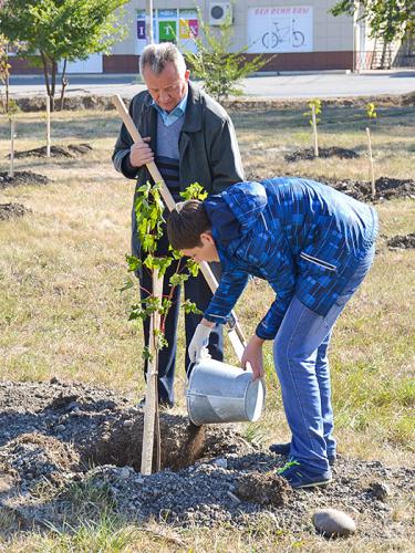 НовостиКленовая аллея — в честь юбилея города19.10.2015 11 октября на пересечении бульвара Мира и ул. Партизанской посадили 190 саженцев клена в честь 190-летия Невинномысска. Акция проведена по инициативе администрации города. В экологической акции приняли участие глава Невинномысска Надежда Богданова, глава администрации города Василий Шестак, представители муниципалитета, городской и краевой Думы, отдела МВД, учащиеся школ №12 и №15, горожане. Утро 11 октября было по-осеннему теплым и тихим, настроение участников «трудового десанта» — приподнятым, рабочим. Глава города Надежда Богданова отметила: «Кленовая аллея — своеобразный подарок Невинномысску, приуроченный к его юбилею. Со временем она превратится в замечательный зеленый уголок, где можно будет погулять и отдохнуть». Глава администрации Василий Шестак добавил: «Приятно, что горожане принимают участие в высадке деревьев. Значит, они беспокоятся о родном городе, любят его и хотят, чтобы с каждым днем он становился краше, чище и зеленее». Подъехала машина с саженцами кленов, выращенными в Невинномысском лесхозе, и все с энтузиазмом принялись за работу. Первые деревца посадили Надежда Богданова, Василий Шестак, первый заместитель главы администрации города Дмитрий Толмачёв, заместитель главы администрации Татьяна Олешкевич, депутат краевой Думы Валерий Черницов. Эстафету приняли начальник УЖКХ Дмитрий Кубадиев, начальник управления образования Светлана Денисюк с мужем, управляющий делами Думы города Владимир Потоцкий, депутаты Константин Демишев, Светлана Глушко и другие. Мужчины, вооружившись лопатами, ведрами и тачками, носили землю в заранее выкопанные лунки, женщины привязывали саженцы к колышкам, поливали деревца. Старались и взрослые, и дети. Все работали от души, понимая, что деревья будут радовать еще не одно поколение невинномысцев. «Посадка дерева, как рождение человека, — сказал, улыбаясь, депутат Думы города, председатель ТОС №9 Константин Демишев. — Здорово, что на въезде в Невинномысск вырастет кленовая аллея. Я сразу же откликнулся на приглашение поучаствовать в акции. С депутатом Виталием Пономаревым с огромным удовольствием сажаем деревья в фабричном парке, с таким же удовольствием работаю сегодня и в этом уголке города». С большим энтузиазмом работали и старшеклассники школ №12 и №15 вместе с классными руководителями. «Мы рады помочь городу, — поделилась Маша Каримова из школы №15. — В Невинномысске много промышленных предприятий, поэтому нужно высаживать больше деревьев, чтобы у нас был чистый воздух. А еще через много лет мы сможем прийти сюда со своими детьми и с гордостью показать деревья, посаженные нами». С удовольствием присоединилась к участникам экологической акции семья Железновых. Татьяна и Роман вместе с сыновьями Игорем и Димой живут напротив будущей аллеи. Они тоже решили посадить свое дерево. Шестилетний Дима вместе с папой носил землю, поливал «свой» клен. «Обязательно будем ухаживать за нашим семейным деревом, которое сегодня посадили, — заверила Татьяна. — Здорово, что рядом с нами появится аллея. Приятно будет гулять с детьми и дышать свежим воздухом». Когда деревья были посажены, никто не спешил расходиться: еще раз осматривали каждое дерево, проверяли, крепко ли привязаны к колышкам, все ли политы. «Мы с мужем очень хотели по